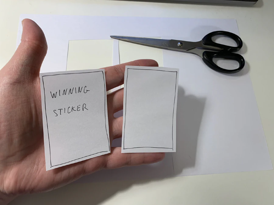 Then, on one of the sticker you just drew, write down “winning sticker” in it: